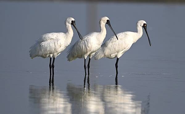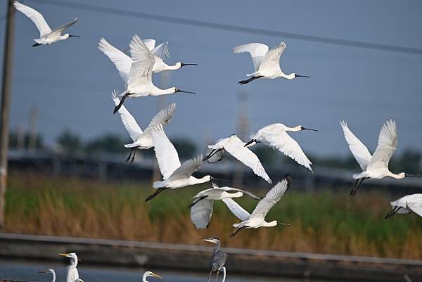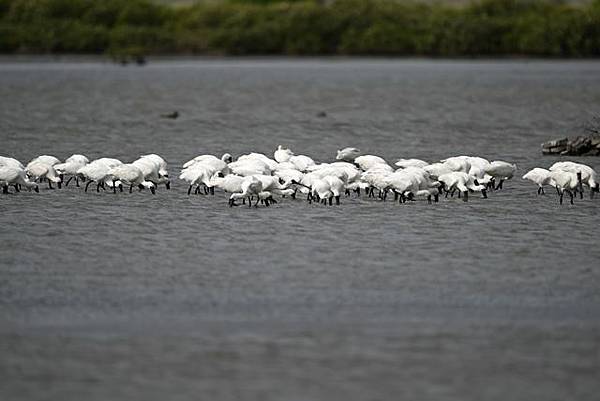邱仁武說,剛剛飛抵台灣的黑面琵鷺身體都很髒,因為牠們長途跋涉飛行2000多公里,在頂山賞鳥亭的黑琵都相當飢餓覓食也順便洗澡清淨身體,相當壯觀。