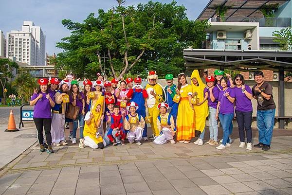 配合活動展開,校園先行做情境布置,校長康晉源、家長會長王俊憲及志工們紛紛化身成為瑪利歐、路易吉、碧琪公主等角色,迎接國中小和幼兒園孩子的到來,並分發闖關小貼紙。
