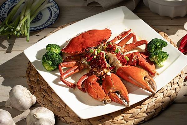 香港籍陳克強主廚特別將口袋名單內的螃蟹菜色無私盡現,嚴選約1斤重的大沙公,肉質飽滿、彈性紮實。透過熱炒讓醬汁融入蟹肉,或以清蒸方式呈現螃蟹的鮮美滋味,無論怎樣的烹調方式,都能帶來極致的美味。此次主廚特別推出「品味秋蟹」主題料理,以五道鮮美的紅蟹饗宴,包括:剁椒蒸沙公、麻香蔥蓉蒸螃蟹、上湯焗沙公配河粉、椒鹽百花螃蟹、海膽鮮蟹肉炒飯等,以粵菜和潮州菜的手法,為老饕們帶來全新的味蕾體驗。
