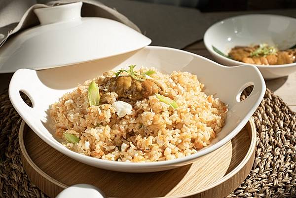 隨後加入炒香的雞蛋,拌入新鮮蟹肉與米飯一起高溫快炒,並淋上特製的海膽醬,使濃郁的海膽香氣與蟹肉鮮甜完美融合。上桌前點綴上新鮮海膽,不僅提升炒飯的奢華感,更可將海膽與炒飯一同拌食,帶來海洋獨特風味與十足的飽足感。