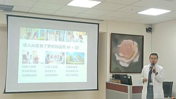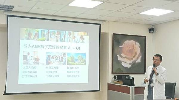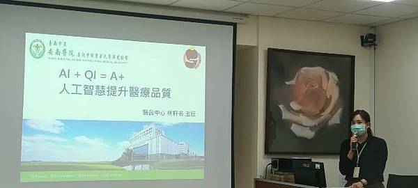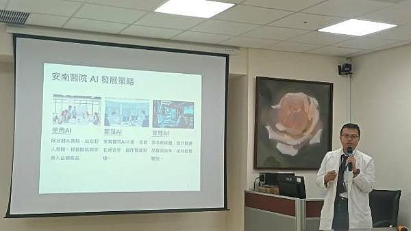 林軒名主任指出,如今全球皆面臨醫療人力短缺的挑戰,善用新興科技無疑成了維持優質醫療服務的解方之一,這同時也是安南醫院投入發展智慧醫療之目的。安南醫院特別重視AI系統的實務應用,現正採取「AI + QI = A+」策略,意即將人工智慧與醫療品質改善緊密結合,創造優質醫療服務。