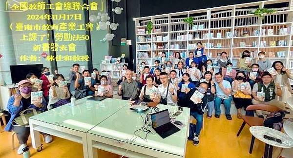 勞動教育是非常重要的,身為老師推動勞動教育責無旁貸,我們的學生未來不管是擔任什麼樣的工作,都必須有勞動教育的意識,今天新書發表會由臺南市教育產業工會辦理更是深具意義,藉由林佳和教授精闢的演講,讓更多老師了解勞動教育的重要性,同時推廣全教總出版的「勞動法50+」專書,歡迎有興趣老師與本會接洽,一起為台灣的勞動教育努力。