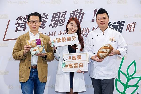 王鵬傑師傅表示,要在麵包中增加蛋白質、膳食纖維並不容易,就算以完全以牛奶、豆漿取代水,也很難達到高蛋白的程度,而且台灣民眾多偏好柔軟的麵包,但膳食纖維含量高的麵包卻又容易有乾硬、粗糙的口感。為了符合衛福部高纖(每百克含6公克以上膳食纖維)及高蛋白(每百克含12公克以上蛋白質)的標準,這系列麵包使用統一超纖與高蛋白專用粉製作,藉由精確比例計算提升膳食纖維與優質蛋白質含量。經焙香細磨的小麥麩皮、裸麥、燕麥,不僅降低粗糙感,還保留穀物香氣,同時也使用15%的統一蛋白質專用粉取代部分麵粉,其牛奶蛋白質來源讓身體更容易吸收利用。