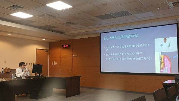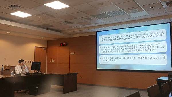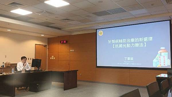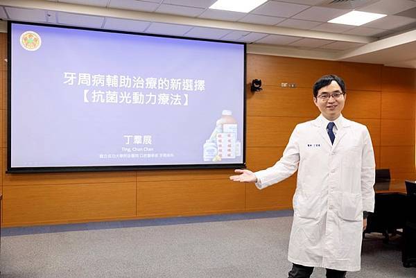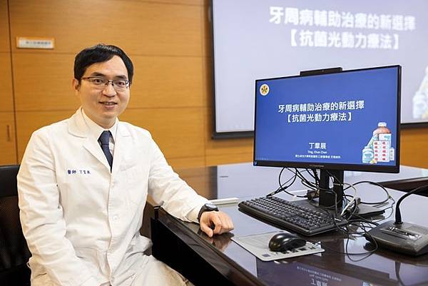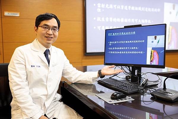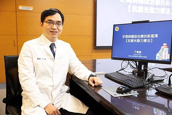 丁羣展醫師表示,針對牙周破壞較嚴重的牙齒,除了使用抗生素等藥物治療之外,光動力療法 (Photodynamic therapy, PDT) 最近已成為新的治療選擇。針對細菌的光動力療法稱為抗菌光動力療法 (antimicrobial PDT, aPDT) ,此療法是利用光感劑將細菌染色,並使用適當波長和低輸出能量密度的雷射進行照射,達到牙周囊袋內殺菌的目的。抗菌光動力療法搭配非手術牙周性治療,顯著可改善且穩定牙周炎患者的臨床症狀。
