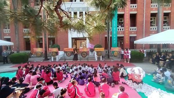 在精采的表演之後,開鑼儀式隆重展開。南大校長陳惠萍、附小校長楊怡婷、附聰校長郭勇佐、附中校長陳森杰、校友總會理事長吳東林,以及前教育部次長吳鐵雄校友,攜手學生代表,共同敲響六面大銅鑼12聲,象徵傳承百年歷史與開啟嶄新篇章的意義。伴隨著鑼聲響起,現場洋溢著歡欣與期待的氛圍,為126週年校慶揭開序幕。