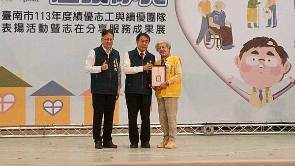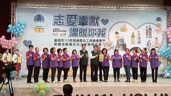 【柿子日報記者李玲/台南報導】每年12月5日為國際志工日,臺南市政府為共同響應,今(30)日在勞工育樂中心演藝廳舉辦「臺南市113年度績優志工與績優團隊表揚活動暨志在分享服務成果展」,由台南市市長黃偉哲親自頒獎給128位來自不同領域,服務年資滿10年且時數已滿2,000小時的績優金質獎志工,以及4隊績優志工團隊、5組績優家庭志工和5個績優局處等獲獎人員,並於頒獎結束後,加碼抽獎1000元禮卷給10名幸運志工。