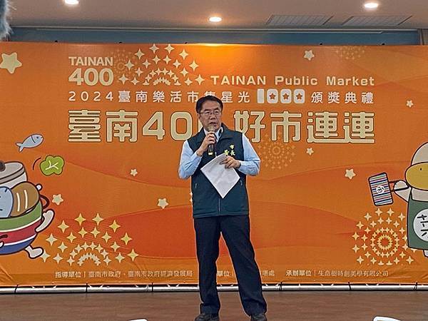 【柿子日報記者李玲/台南報導】臺南市挑戰素有「菜市場金馬獎」美譽的「經濟部優良市集暨樂活名攤評核計畫」勇奪1056顆星,歷年累計星等數正式突破7000顆星!臺南市府今(11)於萬國通路創意觀光工廠-築夢學堂舉辦「2024臺南樂活市集星光1000頒獎典禮」,市長黃偉哲親自頒獎給獲獎市集及名攤代表,現場眾星雲集,一齊高喊「臺南400、好市連連」!