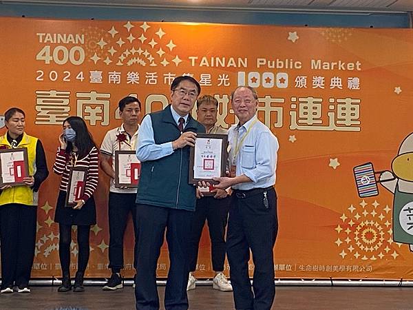 市長黃偉哲表示,臺南400,果然是好市連連,臺南市今年勇奪1處5星市集、7處4星市集、34處3星市集;5處5星名攤、14處4星名攤、280處3星名攤,感謝經濟部商業發展署、經濟部工商輔導中心對臺南的肯定與輔導。並於現場頒發獎金勉勵各獲獎代表,新入選4星市集:西門淺草青春新天地、崇義黃昏市場、西港市場、下營市場及武聖夜市各獲2萬元獎金,5星名攤各獲1萬5000元獎金,4星名攤則各獲8000元獎金。
