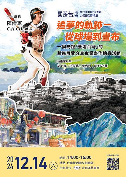 活動現場除了四幅義賣的陳傑憲肖像畫作,還展出《藝遊台灣》系列畫作,結合藝術與運動的夢想交集。玲廊滿藝驚喜宣布,前15位購買《藝遊台灣》系列作品的支持者,將獲得陳傑憲親筆簽名球,讓這場活動成為藝術與運動的完美融合。