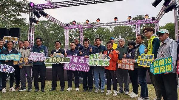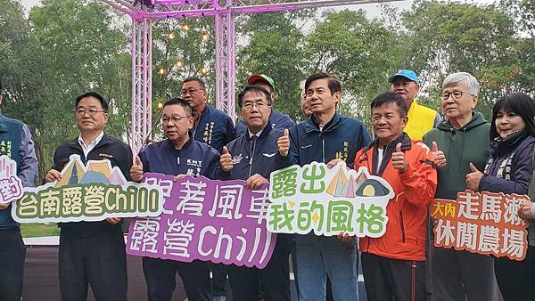 【柿子日報記者李玲/台南報導】台南市政府觀光旅遊局14日在德元埤荷蘭村辦理「跟著風車露營 chill」開幕活動,由市長黃偉哲、觀旅局長林國華、柳營區長顏文穗、露營協會籌備委員會主委林明賢,梅嶺神秘氣場露營區、德元 埤荷蘭村、走馬瀨休閒農場、曾文青年活動中心等露營場代表、各立委議員服 務處代表,以及臺南市運動、觀光、餐旅、民宿發展等相關公協會理事長及代 表等貴賓,…等貴賓,共同在柳營區德元埤荷蘭村賞風車、放鬆 Chill 露營。