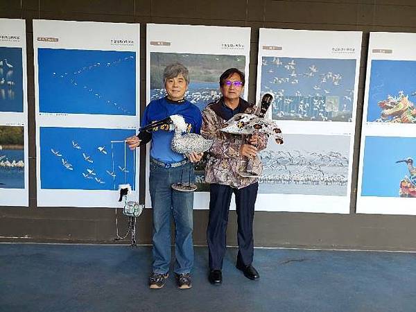 【鋁罐黑琵藝術】李家琦老師表示,民國90年前往土城聖母廟,發現有人用鋁罐製做沙發,也迷上了鋁罐創作,黑面琵鷺鋁罐創作有平面及立體,藉由環保教學時間做黑面琵鷺規劃與製作一系列黑琵作品。第1件鋁罐黑面琵鷺作品是用鋁罐的罐底來做,每個罐底只有4~5公分,而且罐底有弧度製做起來蠻有難度的;第2件作品用拉環來做,第3件才用鋁罐來做;不同的材料用完,再來就用黑面琵鷺的多樣姿態造型來展現,發現有更多多采多姿的創作空間。除了材料與姿態外,也陷入創作瓶頸,後來看到自己其他作品,也就想到連結創作,如採魁儡方式製做魁儡黑琵、加個時鐘的時鐘黑琵、小小兵黑琵、黑琵帽、黑琵機車等,共十餘件作品參展,歡迎大家踴躍前往觀賞作品,來個難忘的「琦幻之鋁」。