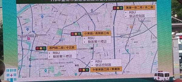 交通局長王銘德表示,交通局已於110年於奇美醫院至成大醫院間林森路三段、開元路、中華路等路段21處路口及112年於安南醫院周邊臺19線與長和路段中10處路口建置緊急車輛優先號誌系統,113年再於成大醫院(小東/長榮路口)、郭綜合醫院(西門/中正路口)、臺南市立醫院(中華東/崇善路口)及榮總臺南分院(高速一街/永二街口)等4處緊急車輛多事故路口建置優先號誌,並首度導入消防車進行試辦,打造緊急救護安全可靠的最後一哩路,累積總共建置車路聯網優先號誌路口35處、救護車20輛、消防車3輛,是國內最大的緊急車輛優先號誌系統。