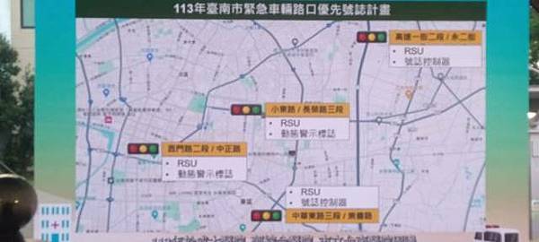 南市府指出,臺南市於110年首次運用車路聯網的技術,建置奇美醫院至成大醫院之間的緊急救護車輛優先號誌,於112年再於安南醫院周邊建置緊急救護車輛優先號誌系統。儘管救護車輛依法可以鳴笛穿越紅燈路口,但可能會造成路口險象環生,也增加救護人員的壓力,為了提升緊急救護車輛出勤安全性,113年特別再盤點緊急車輛多事故的4處路口建置優先號誌,透過即時控制時號誌相的方法,使緊急救護車輛可安全順暢通過路口。