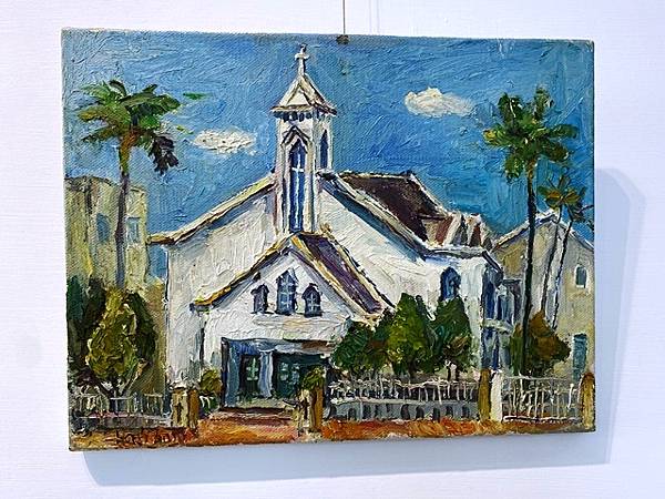 林中信:小島美術館藝術家,創作當地特色木麻黃防風林創作唯美台江浪漫畫作。