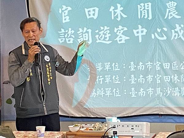 官田休閒農業協會理事長邱顯邨表示:首先很感謝市府農業局及官田區公所以及官田農會願 意大力支持本會推動之策略,官田休閒農業協會主要整合官田區各農場景點,菱角業者、民宿業 者、特色場域、烏山頭等景點,透過協會來整合共同發展,並帶領各夥伴們一起為為官田休閒農 業及地方農業經濟提升而努力,在葫蘆埤成立遊客諮詢中心是我們的第一步,未來將串聯更多業 者,一起做大官田。