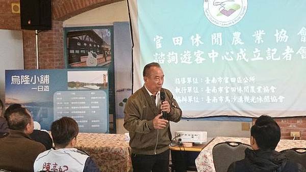 成立遊客諮詢中心外,也曝光休閒農業協會的四季套裝遊程及各農場體驗diy,如邨 田森態農莊、台南鴨莊、旭陽農場、宏美農場、幸福菱角、玉和軒等農業體驗,也結合各旅行社 來一起推動官田農村體驗,現場也有各店家之美食餐桌、各農場代表之伴手禮來呈現。