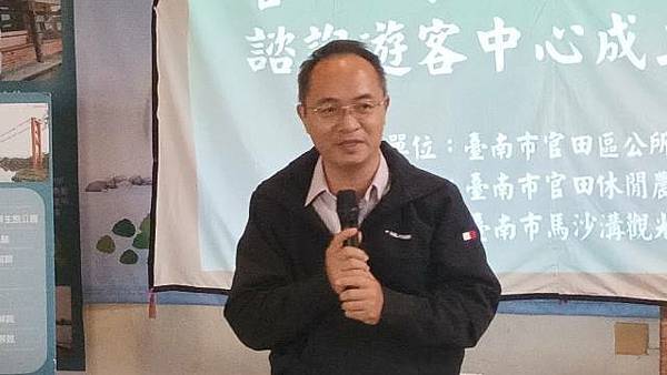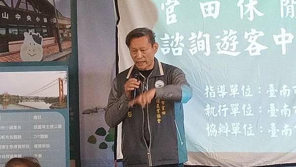 官田區區長洪聰發表示:很開心轄區內的官田休閒農業協會團隊一同推廣官田及周邊鄰近農場 及景點,而今日在葫蘆埤二樓成立遊客諮詢中心更是公所所樂見,以及8月6號新業者「山中央小舖」 的加入及特色美食的帶入,讓官田區更加生氣蓬勃外,也推動官田區套裝行程,讓更多遊客來到官田 有更多元化的旅遊選擇,也歡迎遊客可以來到官田賞湖景,吃美食。
