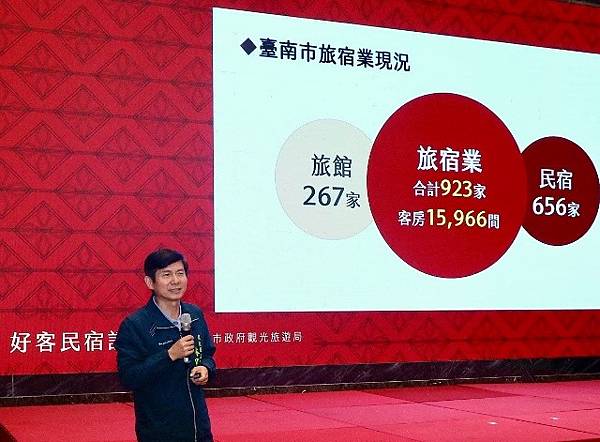 市長黃偉哲表示,全臺1萬多家合法民宿中,僅約1700家通過好客民宿遴選,而臺南市就有167家,其中更有13家榮獲金質獎,充分顯示出民宿經營者的用心與熱忱,另為宣傳好客民宿的用心,這次市府串聯好客民宿業者辦理入住請吃「來一客」泡麵活動,讓旅客感受臺南民宿會是心中最「LIKE」的。