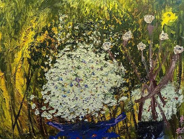 【柿子日報記者李玲/台南報導】 「活在當下」李赫本個展,即日起至12/29(日)在吳園公會堂表演廳展出近期創作的多幅油畫作品暨新書發表會,並於近日展開一系列[心機藝術]活動,從梵藝術[湧現]雙個展到吳園[李赫本藝術經濟學]新書發表,畫作「活在當下」是藝術家李赫本畫出自己用理性與感性兼具的慧眼忙碌於公司工作煉金同時抓緊時間創作,電話、地瓜、花園裡蝴蝶…,享受當下生活的美好。