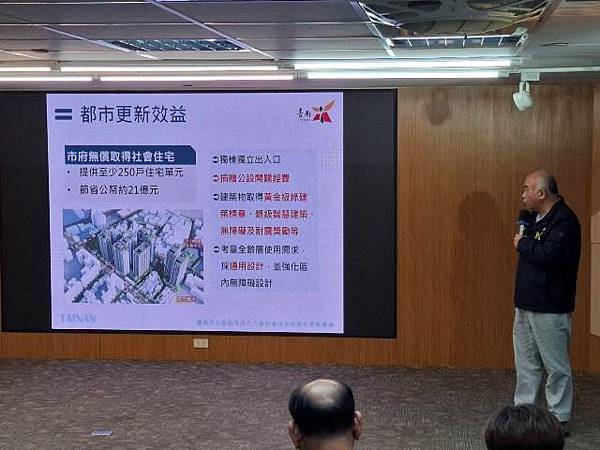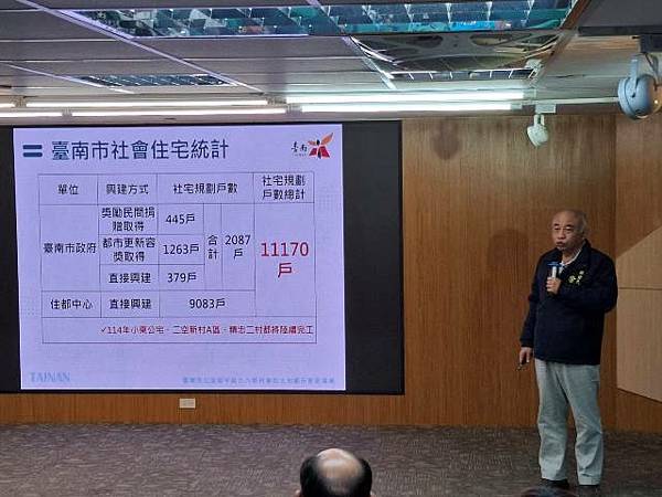 都發局指出,臺南市目前已陸續完成二空新村A、B區、精忠二村、東區平實一、二期、自強新村及中興新城等國有地都市更新開發招商程序,全市的社會住宅總戶數,包含規劃及興建中,總共有11,170戶,由市府直接興建及透過公辦都市更新取得之戶數約達2,087戶。