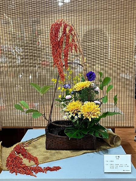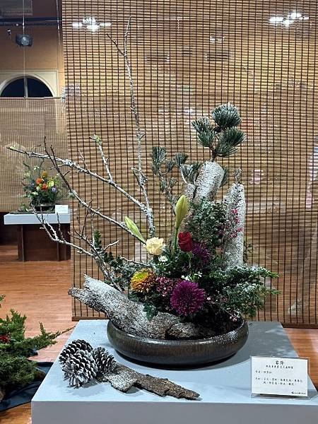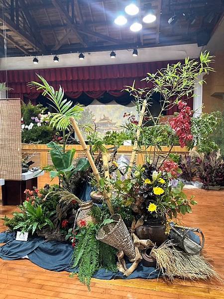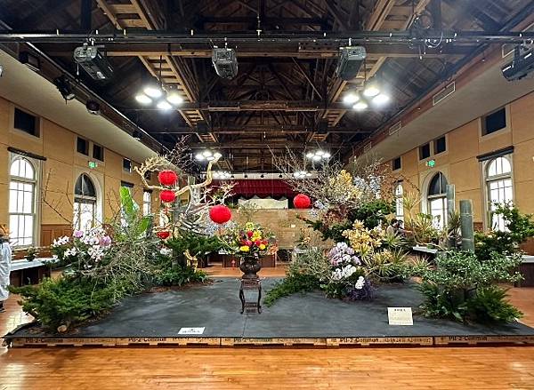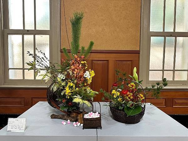 此次展覽主題區域與特色分為A區「吉慶」,以民間傳統節慶為靈感,展示歲朝、清明、端午、七夕、中秋等節日的插花作品,生動詮釋這些節日從古至今的習俗與文化意涵。B區則是「風華璀璨 府城300載」,以府城台南300年的歷史為主題,特大作品描繪明鄭時期的日常生活、赤崁樓意象、沙洲風情,並以莿桐花、木麻黃、草海桐等瀕臨絕種植物呼應自然保育的理念。同時,也展現了西拉雅民族文化的融合。中小型作品則以四季變化與24節氣為靈感,帶領參觀者細品台南文化的多元面貌。