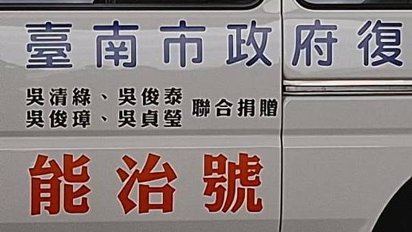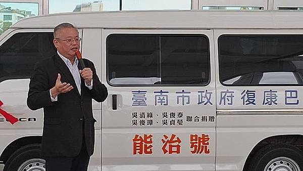 吳清綠先生為福農貿易總裁暨中華民國全國商業總會常務理事,除將臺南市的農產品推展至世界各地,因有感身心障礙者交通不便,與子女共同出資捐贈一輛復康巴士,並為紀念父親大愛,以父親之名命名為「能治號」,盼望與市府齊心關懷身障朋友,致力回饋臺南,落實社會責任。