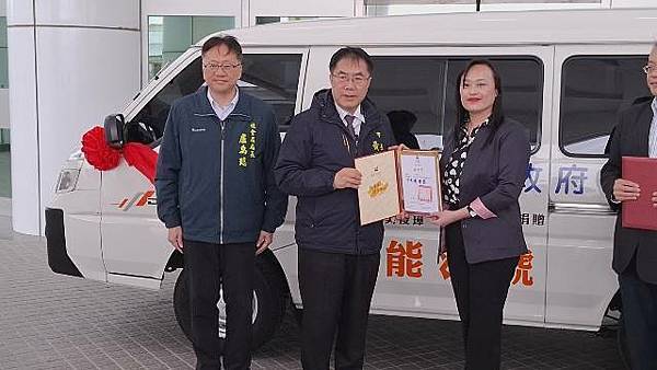 【柿子日報記者李玲/台南報導】為響應黃偉哲市長溫暖大臺南之施政理念,福農貿易股份有限公司董事長吳清綠偕同子女吳俊泰、吳俊璋、吳貞瑩聯合捐贈臺南市政府復康巴士,協助市府提供身障朋友交通接送服務。市府今(14)日在永華市政中心舉行捐贈儀式,市長黃偉哲親自致贈感謝狀予吳氏家族,感謝愛心善舉為城市注入溫暖力量,並盼望未來能有更多社會人士加入行善行列,讓善的力量永續發展。