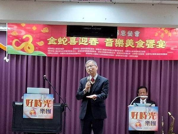 【柿子日報記者李玲/台南報導】農曆春節將近,臺南市政府與慈聯基金會於今(15)日攜手社團法人台灣武廟志工協會在北區和順里活動中心舉辦「114年臺南市街友尾牙祈福感恩餐會」,社會局盧禹璁局長代表黃偉哲市長親自出席發放春節紅包並致贈禦寒衣物等民生物資,也特別致贈感謝狀給社團法人台灣武廟志工協會等10個協助單位,感謝在春節即將到來前帶給街友們更多的溫暖與祝福,巿議員陳怡珍、沈震東亦到場參與。