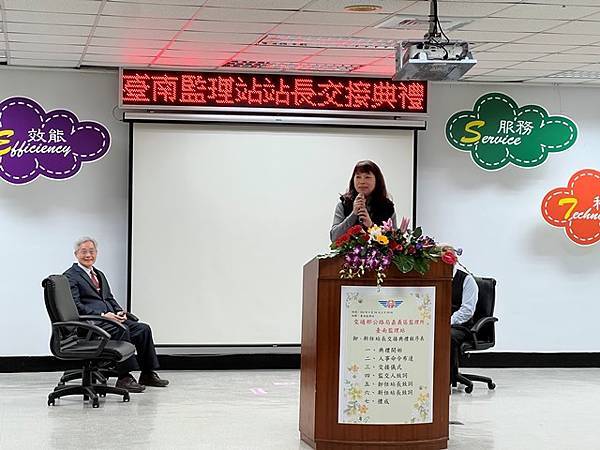 原任站長蔡娟娟在監理單位服務逾30年,一路從技術員到運管科長、監理站站長,公路監理資歷相關完整,在臺南站服務期間,帶領同仁在運輸業管理等各項業務均有優異的表現,現今榮調麻豆監理站站長,返鄉服務,必能大展長才。