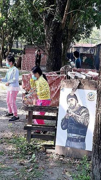 劉處長安排活動活潑多元,開場大合影後,立即安排稚嫩的自強學子分組集訓,農場專員講解漆彈玩法和安全事項,掩蔽和射擊技巧,單兵射擊和團體對抗 ,體驗戰場瞬息萬變,小學子毫無懼色,以遊戲方式融入全民國防戰鬥概念,激烈的攻防個個都是小勇士,玩得不亦樂乎。金蛇迎春春聯筆墨香,耆老書法老師氣定神閒,筆墨靈蛇遊走驚風,字字精純,小朋友看得出神,年節文藝氣息與戰鬥元素,形成強烈的對比,先武後文,文與武的較場,文武合一,深度訓練允文允武,深具教育意義。寒假時光。