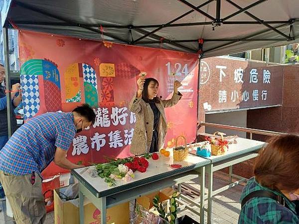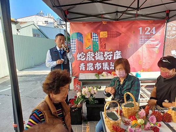 農業局代理局長陳仲杰表示,農業局一直以來致力於協助在地青農拓展銷售管道,推廣安心食材和健康飲食概念,透過輔導農會設置常態性市集,讓消費者更方便地購買安全、新鮮的農產品。本次市集將展售多種優質商品,包括有機蔬果、蜂蜜、竹薑及各類小農加工品。24日的市集活動還特別安排了花藝老師涂譯心的「招財納福蔬果創意盆栽」教學課程。這項課程結合當地農民用心栽培的蔬果與觀葉植物,融入新年招財納福的民俗文化,教導參與者製作獨具意義的植栽作品,為家中增添新春氣息與祝福。