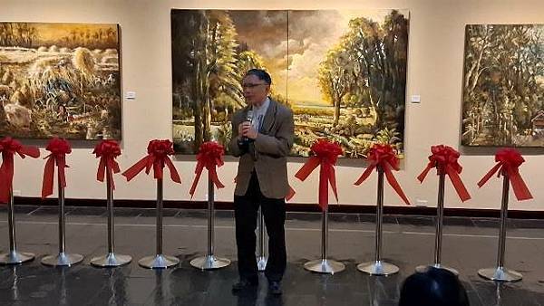他畢生專攻油畫創作,追求畫面光影變化與風格的改變,此次回顧展以「光影線索」為主題,展出陳老師代表性的「五光十色」、「瀰灩幻影」、「藝樹臨風」系列作品,這些作品透過獨特的錯視效果,探索物體在不同環境中的存在性與真實性,表現出他對光、色彩與空間變化的深刻理解。