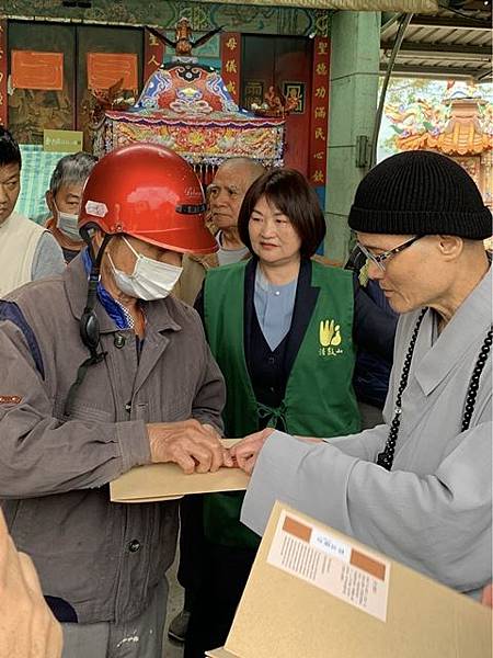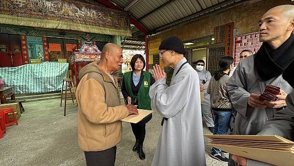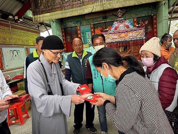 隨後方丈和尚前往楠西里辦公處,與楠西里、照興里、灣丘里、東勢里的20戶受災民眾親切互動。里民們分享:「這次地震雖然房屋受損,但幸好人都平安。」方丈和尚鼓勵大家常念「觀世音菩薩」,以佛法安住內心,並逐一致贈每戶慰問金和「有大願力」掛軸及結緣禮,祝福大家以願力與信心安頓好身心,展開新的生活。