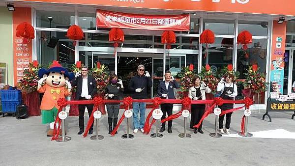 家樂福超市新市民生店今由家樂福營運長吳國憲、超市事業群總監陳鳳連、新市民生店店長吳珈誼、統上開發建設公司總經理蔡宗佐等嘉賓共同剪綵,宣佈正式開幕。家樂福超市將持續展店,成為最貼近鄰里的好厝邊,為當地居民提供更便捷的採購選擇。