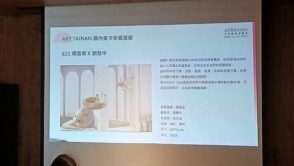 藝術新星與後起之秀見證無數藝術新星誕生的臺南新藝獎,每年從獲獎者中選出3位藝術家參與ART TAINAN,讓新銳創作者與畫廊合作,加入市場脈動,成為官辦獎項銜接市場的重要橋樑。媒合名單:索卡藝術X李盈蓁、弎畫廊X張芸家、絕對空間X翁榛羚。於此同時,今年臺南市政府文化局也特別協助在台南藝博現場建構「美學教育空間」,聘請國立臺南大學視覺藝術與設計系,透過師資培育生的藝術教學,使本科系學生學習實務技能,同時讓孩子們在參觀展覽後,即時運用靈感創作。期望藝術行業透過此合作,啟發孩童對於藝術的興趣並培育未來行業內的人才種子,實踐正向循環。