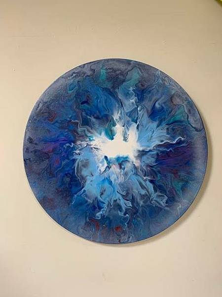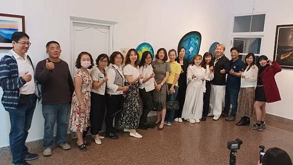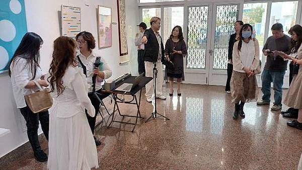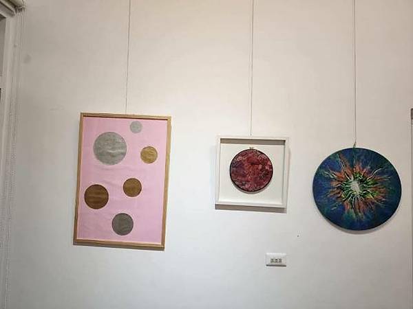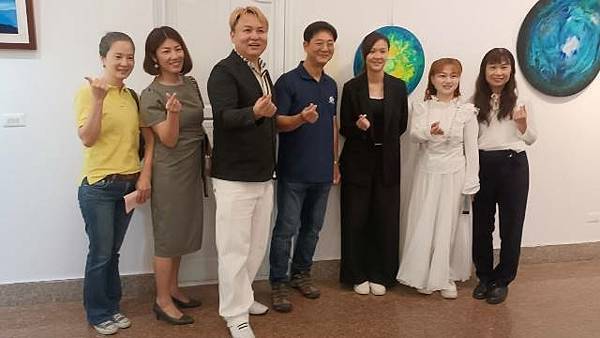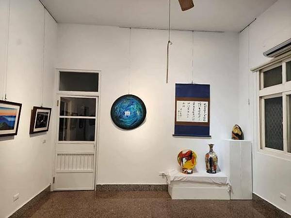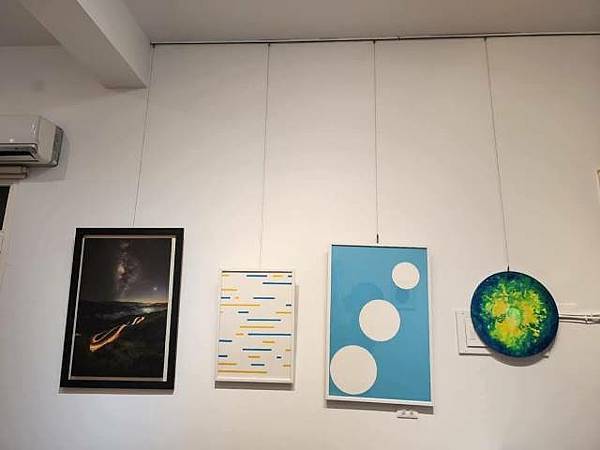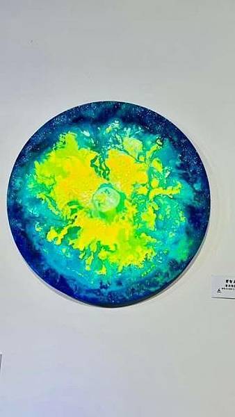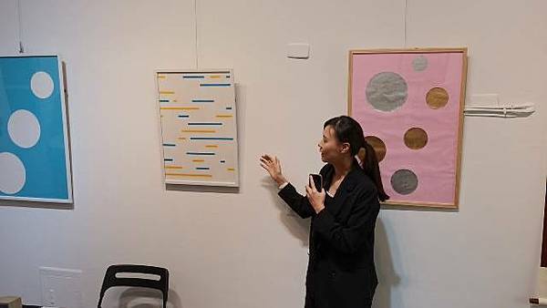 吳忠政老師特別以行書創作[台江漫步:台江岸邊綠柳垂,花香鳥語共徘徊。漫步其間心如水,山河秀麗入夢來。]發表!快樂公主曾智美老師的冥想能量畫源由三昧智學院六度三箴的學習探索愛快樂幸福自由之道,結合拉菲樂能量精油的抽象形流動畫形式,傳遞法喜悅的能量。新秀趙偉陵老師《色彩中平等的回聲》以線條長短與色彩的對比,象徵社會不平等與文化差異,最終將逐步走向於平等,展現透過對話與包容帶來的和諧。