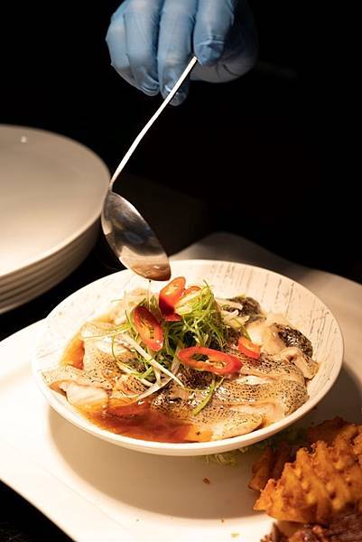 餐宴中其中一道是東香台菜著名的功夫菜「王梨菱角梅露滷封雞」,這道菜費工費時,需時10小時起的料理過程,雞肉需先煮後滷再蒸,將雞肉燙熟並以200多度的油溫炸至酥脆,另以香菇、官田菱角、蒜頭、薑、扁魚和蔥、關廟鳳梨等食材做滷汁燉滷,上桌前再把蒸好的雞肉倒扣上盤,淋上以醬油、冰糖、胡椒、楠西區梅露調製的醬汁,也代表傳統意義上吃雞是「起家興家」的文化。另外一道「西瓜綿網紗包思慕魚」,虱目魚肚中加入西瓜棉,外層包裹上薄如蟬翼的豬網油後清蒸,融化後的豬油香氣與魚肉融合增添層次,搭配破布子與豆瓣調成的醬汁,鹹香入口,香氣十足又下飯!