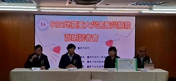 南市府懇請社會大眾持續支持震災重建,攜手幫助災民早日恢復正常生活。請洽:臺南市社會救助金專戶線上捐款平台-愛心捐款-專案捐款-0121震災捐款https://donate.tainan.gov.tw/home.jsp