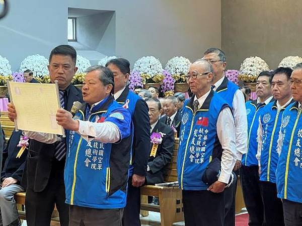 社團法人中華民國空軍航空技術學院校友總會總會長廖盛芳、副總會長劉鎮燈、副總會長王文男、名譽總會長曹明德、高雄市分會理事長周長松、台南市分會理事長蒲德明、桃園市分會理事長蕭靖奎 、暨全體理監事幹部 敬文。中華民國一百一十四年三月十八日,敬禮!司儀朗讀證書詞,廖總會長頒授證書,追聘故果芸上將為校友總會〔永久榮譽總會長〕由果上將大公子代表接受榮銜,一代名將乘鶴去,軍人公墓英雄塚。