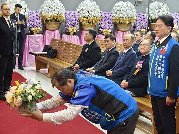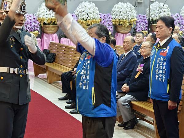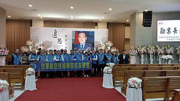 【柿子日報記者李玲/台南報導】故 果芸上將,畢業於空軍機械學校,地勤之人瑞上將軍,月前驚聞噩耗不幸於美國逝世,劃下了傳奇的ㄧ生,3月9日骨灰由家屬自美運回台,擇於3月18日假臺北二殯舉辦公奠儀式。空軍航空技術學院校友總會總會長長廖盛芳,半夜四點自高雄包車一路接人北上,率弔唁團名譽總會長曹明德,兩位副總會長劉鎮燈、王文男、高南桃分會理事長及理監事幹部會員校友代表四十餘人,直奔二殯全程追思致哀。