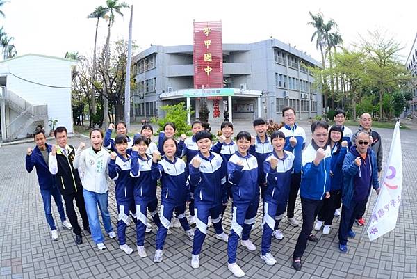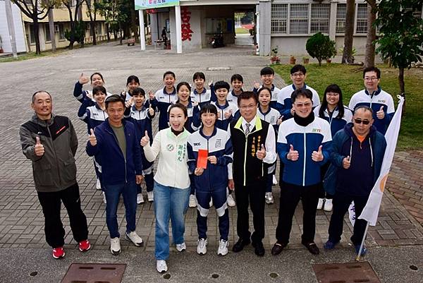 市議員謝舒凡,身為學甲國中畢業校友,對於學妹們的表現感到無比榮耀。她致贈加菜金,並鼓勵選手們在賽場上發揮最佳實力,表現不負眾望。