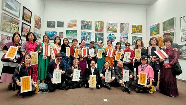 台灣代表團在展覽中的表現尤為亮眼。由藝術家陳炳臣擔任佈撤展主委,理事長李銘煌擔任副主委,巧妙運用有限的空間,營造出大氣而富有藝術氛圍的展覽區域,成為全場焦點之一。此外,李銘煌理事長特別準備了客製化嵌名聯作書法,贈送給每位參展藝術家;而會長李正輝則以別具意義的紅包,內含其百歲母親的簽名$100,祝福每位藝術家福祿壽喜財運發。