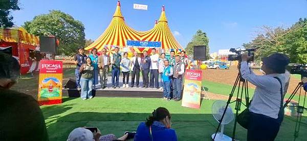 【柿子日報記者李玲/台南報導】FOCASA幾米馬戲樂園今(28日)在台南水交社文化園區大草原正式開幕,馬戲團15周年大作《幾米男孩的100次勇敢》傍晚也盛大登場!下午開幕記者會上,台南市長黃偉哲、導演林懷民、FOCASA團長林智偉一同先帶領貴賓及媒體進入7層樓高的馬戲帳篷,引爆紙花噴灑。這座全台唯一帳篷連日來已吸引眾多過路民眾拍照打卡,今終於開箱篷內奇幻華麗風光,見證台灣馬戲藝術嶄新里程碑。