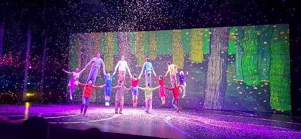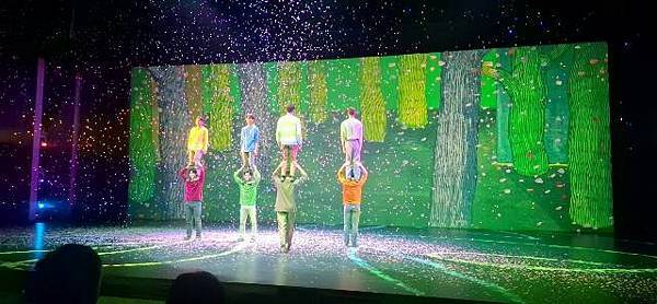 FOCASA團員神乎奇技,騎獨輪車、踩大球,同時拋接數個小球的小丑、三四人高的高蹻玩具兵、離地8公尺的走繩人,都讓林懷民坦言在排練時常看得目瞪口呆,屏息緊張,本該記筆記,卻忍不住為團員拍手喝采,「我希望這齣熱鬧繽紛的演出,會讓每一位觀眾看得開心,笑嘻嘻地走出馬戲帳篷。」