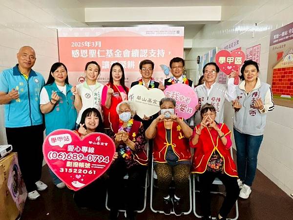 學甲區張明寶區長表示:「看著華山學甲站服務滿13週年,深感落實在地服務真的是一件很不容易的事情,感謝學甲站盡心照顧長輩,期盼藉著學甲站在地服務的力量感染社會大眾,一同重視關懷弱勢長輩的議題。」