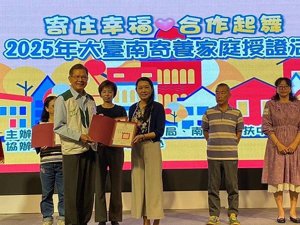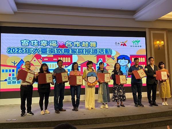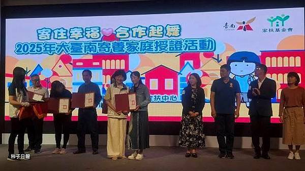 【柿子日報記者李玲/台南報導】家扶和臺南市政府為表揚肯定寄養家庭無私地照顧寄養兒少,特於3月29日上午假東東宴會式場華平館舉辦「寄住幸福·合作起舞」2025年大臺南寄養家庭授證活動,今年總計有81戶寄養家庭獲頒寄養家庭合格證書。