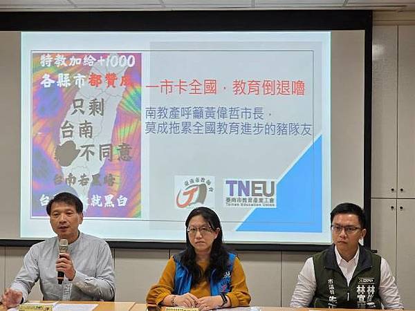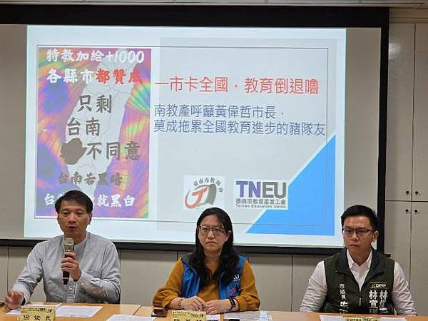 臺南市教育產業工會呼籲臺南市政府能懸崖勒馬,不要發生「一市卡全國」的狀況,應正視特教加給凍漲33年的不合理現象,採取從善如流的態度,贊同特教加給調升方案,方能落實尊重專業與提供合理待遇的正向作為,這不僅是對於專業的基本尊重,更能有助於改善目前教學現場師資招聘困難的現象,讓師資能夠留才久任,確保學生受教權益。