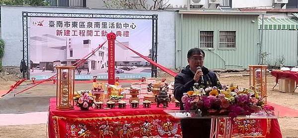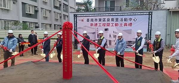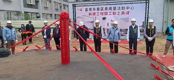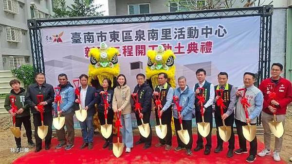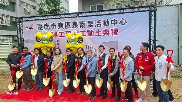 【柿子日報記者李玲/台南報導】為精進在地公共服務機能,臺南市東區泉南里活動中心於今(2)日舉行開工動土儀式,由台南市市長黃偉哲親自主持,未來除里辦公處外,將可提供多功能室、閱覽室、韻律教室、長者休憩區、社區活動室及戶外休閒空間等空間,預計115年度完工。議員王家貞、曾之婕、李宗霖也到場共襄盛舉。