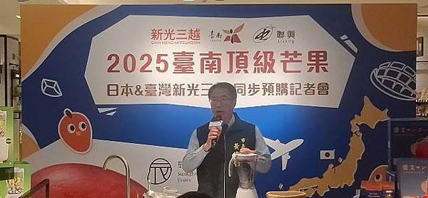 臺南市長黃偉哲表示,好東西要與好朋友分享,臺南芒果為全國產量第一,品質向來深獲消費者肯定,其獨特的香氣與滋味,一直深受國內外朋友的喜愛。頂級臺南芒果往往剛上市就迅速銷售一空,透過本次與新光三越合作,以跨境直送的方式讓日本的消費者有提前購買的機會,為臺南農民帶來更廣闊的市場,讓農人的辛勤耕耘得到相應的回饋,期待能為消費者帶來更多驚喜和美味。