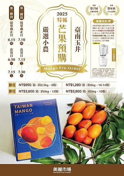農業局局長李芳林表示,今年芒果預購同步進軍日本市場,更恰逢當地中元節送禮旺季,極具話題性與代表性。即日起於全台13間新光三越「美麗市場」皆可填寫預購單,選擇宅配到府;日本亦可透過預購指定送禮地址,冷鏈保鮮,新鮮直送。不論身在台灣或日本,都能輕鬆享受玉井頂級芒果的極致風味。